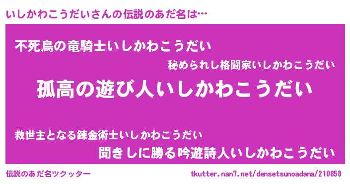 | 男性向けラノベタイトル風あだ名 | 『ダンジョンにいしかわこうだいを求めるのは間違っているだろうか』 |
