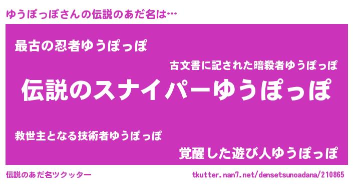 | ファンタジー風あだ名 | 『ユウフェル』『エターナルユウポッポー』 |