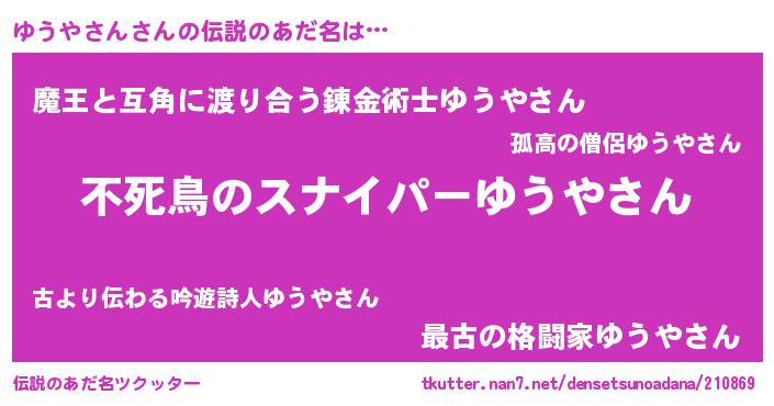 | ヒーロー風カッコイイあだ名 | 『スーパーユウヤサン』『銀牙騎士ユウ』 |