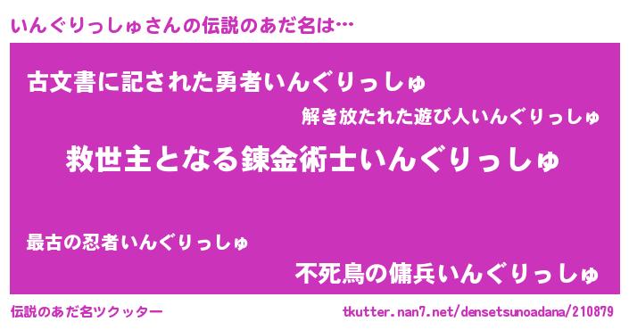 | ヘコむあだ名 | 『いんぐりっしゅ(遠い目)』『いんにー』 |