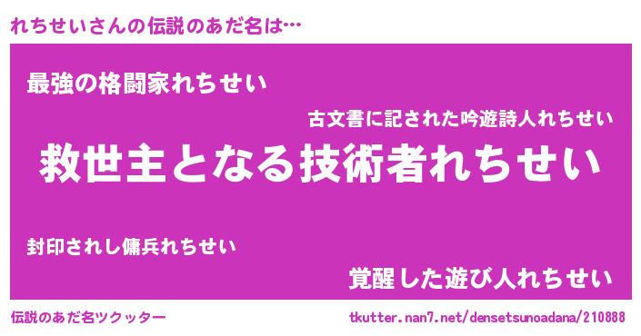| 肩書あだ名 | 『れちせい助教授』『れちせい国家主席』 |