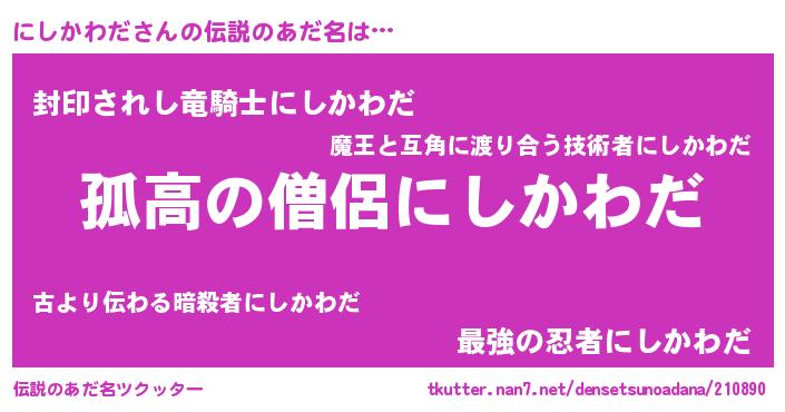 | ポケモン風あだ名 | 『ニシゴンZ』『ヒニシカワダ』 |