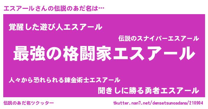 | ファンタジー風あだ名 | 『エターナルエスアールー』『ゼエストゥ』 |