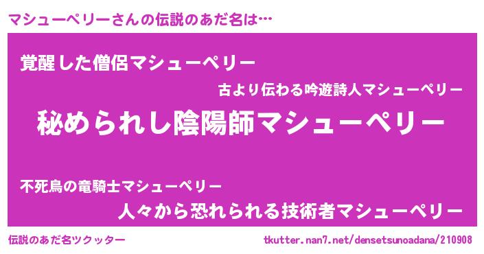 | 男性向けラノベタイトル風あだ名 | 『魔弾の王とマシューペリー』 |