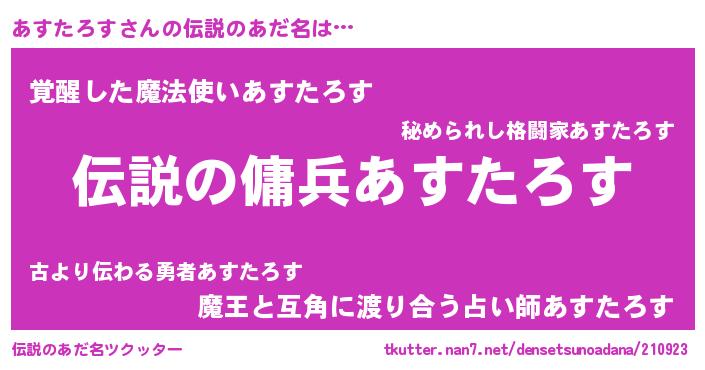| 女子向けラノベタイトル風あだ名 | 『あすたろすなんてお断りですっ。』 |