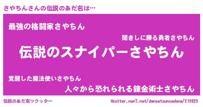 | 男性向けラノベタイトル風あだ名 | 『さやちんの憂鬱』『サヤチンスレイヤー』 |
