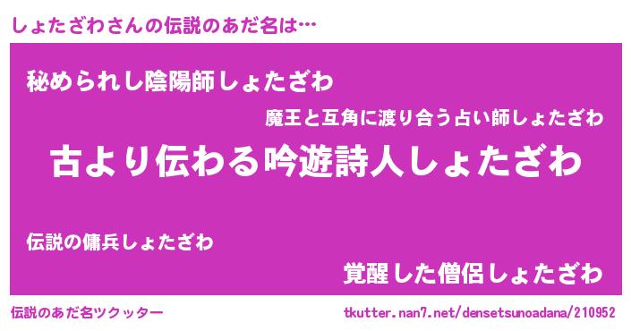 | 男性向けラノベタイトル風あだ名 | 『しょたざわという概念が存在しない退屈な世界 』 |