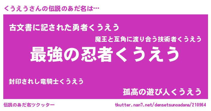 | 女子向けラノベタイトル風あだ名 | 『くうえうの婚約者』 |