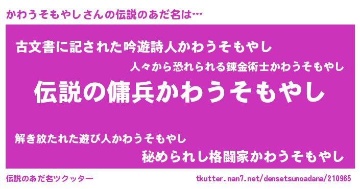 | 胡散臭い通販商品みたいなあだ名 | 『必ず成功する水晶球…その名も「かわうそもやし」』 |