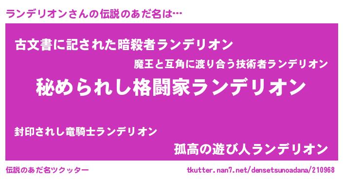 | 意味不明あだ名 | 『ランデリオンフォーエバー』 |
