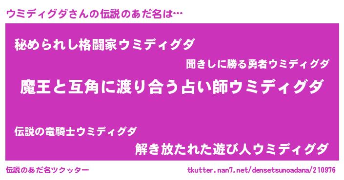 | 女子向けラノベタイトル風あだ名 | 『ウミディグダ恋絵巻』 |