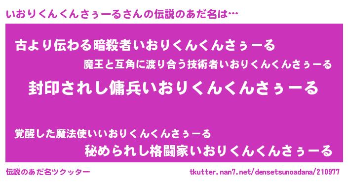 | 胡散臭い通販商品みたいなあだ名 | 『億万長者になれる水晶球…その名も「いおりくんくんさぅーる」』 |