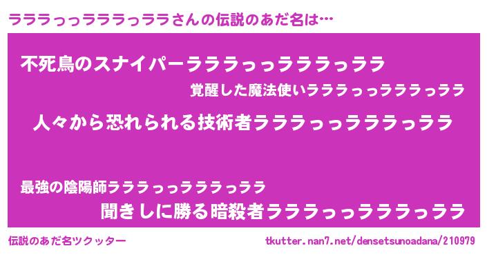 | ヒーロー風カッコイイあだ名 | 『正義の使者ラララっっラララっララ』 |