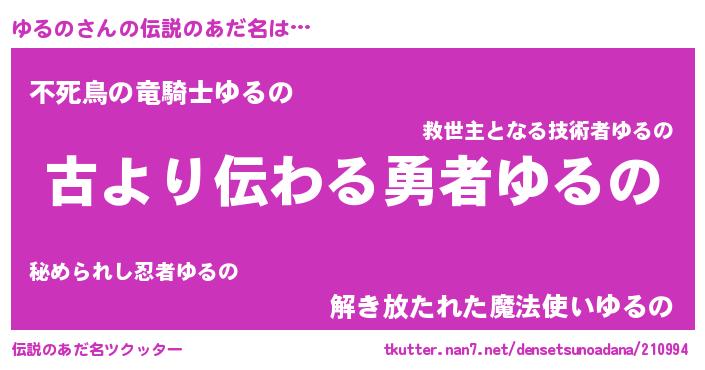 | ヒーロー風カッコイイあだ名 | 『仮面ユルダー』『ネオユルノ』 |