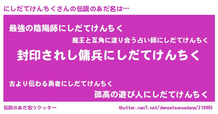 | 胡散臭い通販商品みたいなあだ名 | 『あなたにだけ特別に提供する限定10本のレアな日本酒…その名も「にしだてけんちく」』 |