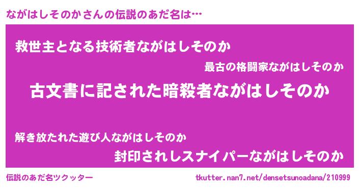 | 意味不明あだ名 | 『永久保存ながはしそのか』 |