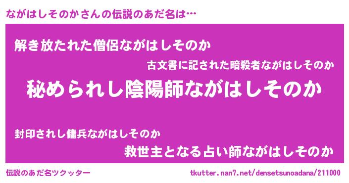 | 女子向けラノベタイトル風あだ名 | 『ながはしそのかなんてお断りですっ。』 |