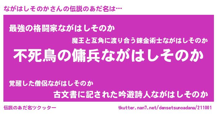 | 胡散臭い通販商品みたいなあだ名 | 『モテモテ間違いなし水晶球…その名も「ながはしそのか」』 |