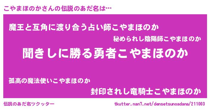 | 意味不明あだ名 | 『永久保存こやまほのか』 |
