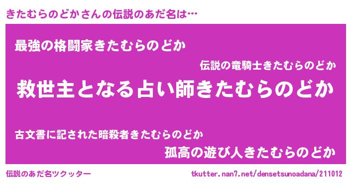 | 意味不明あだ名 | 『自称きたむらのどか』 |