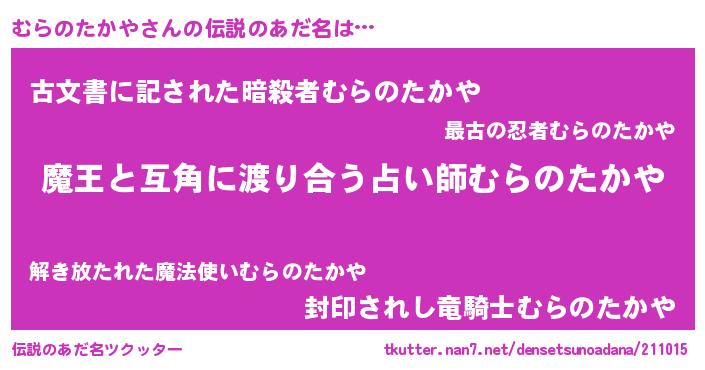 | 女子向けラノベタイトル風あだ名 | 『むらのたかや恋絵巻』 |