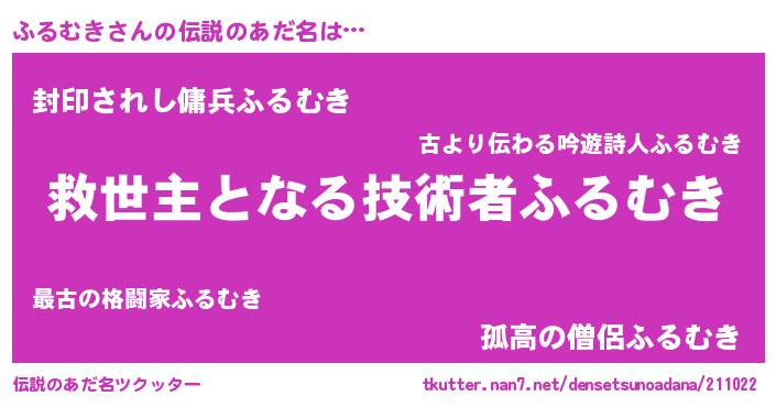 | 男性向けラノベタイトル風あだ名 | 『うちのふるむきが世界を掌握している!』 |