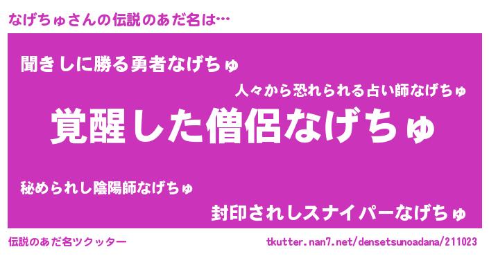 | ヘコむあだ名 | 『なげっ子』『なげちゅ(小並感)』 |