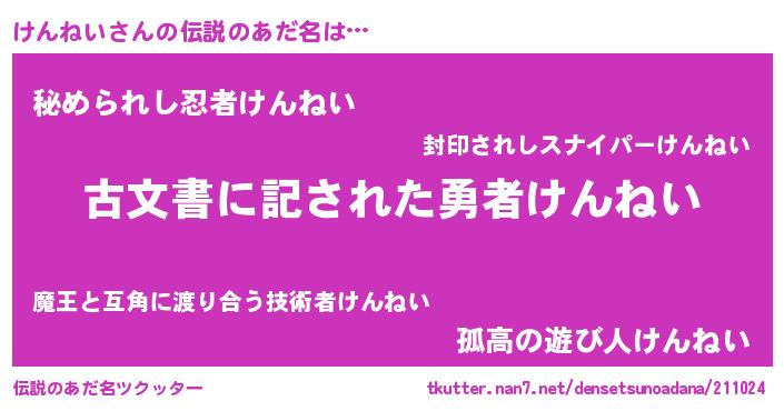 | 意味不明あだ名 | 『自称けんねい』『永久保存けんねい』 |