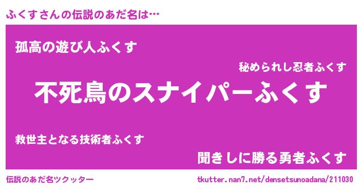 | 男性向けラノベタイトル風あだ名 | 『ふくすの憂鬱』『魔弾の王とふくす』 |