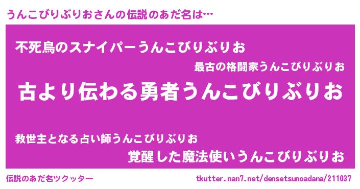 | ヒーロー風カッコイイあだ名 | 『ネオウンコビリブリオ』『炎刃騎士ウン』 |