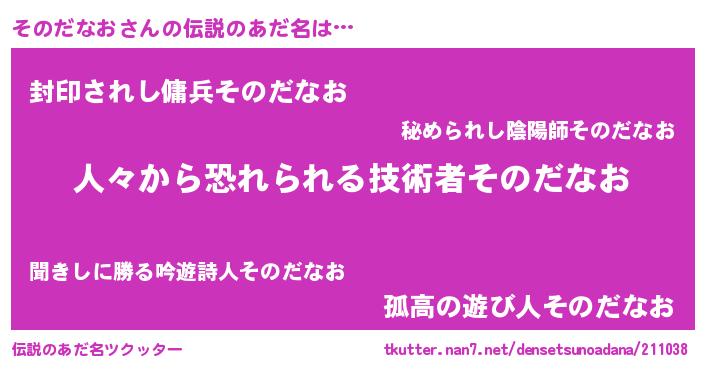 | ヒーロー風カッコイイあだ名 | 『友情の使者そのだなお』『黄金騎士ソノ』 |