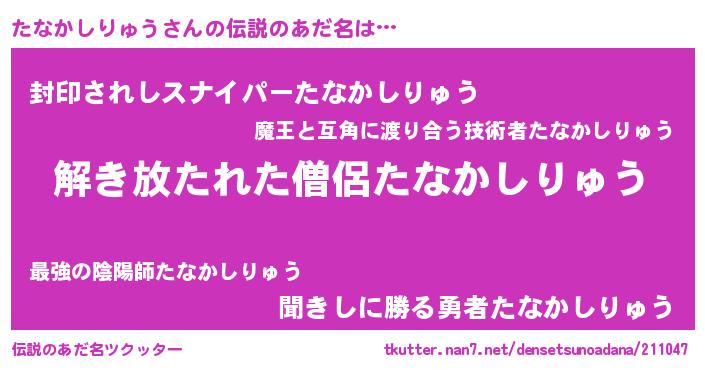 | 意味不明あだ名 | 『とにかく怪しいたなかしりゅう』 |