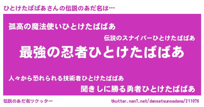 ひとけたばばあさんの伝説のあだ名をツクッター!