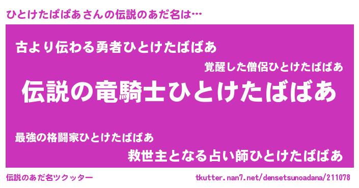 | 女子向けラノベタイトル風あだ名 | 『首の姫と首なしひとけたばばあ』 |