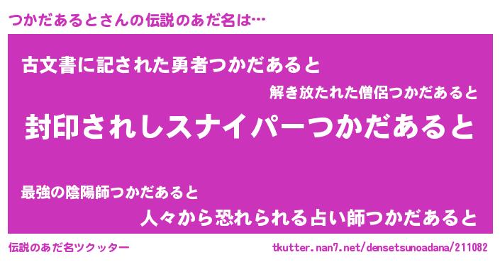 | ヒーロー風カッコイイあだ名 | 『スーパーツカダアルト』『炎刃騎士ツカ』 |