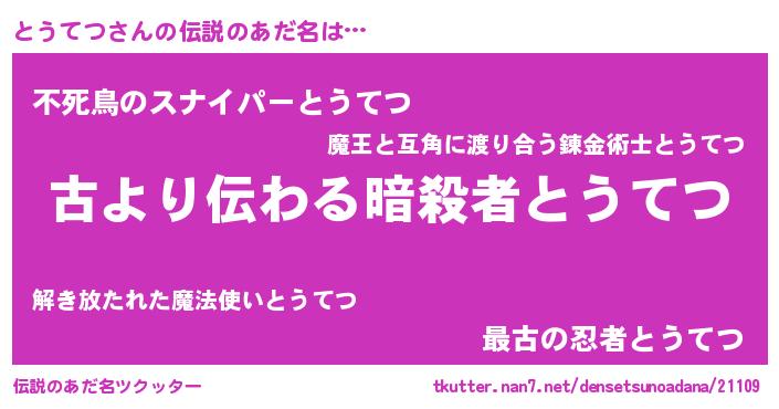 | ヒーロー風カッコイイあだ名 | 『ネオトウテツ』『スーパートウテツ』 |