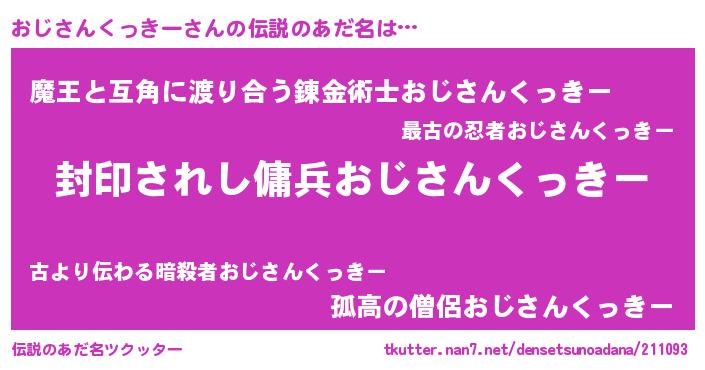 | 男性向けラノベタイトル風あだ名 | 『オジサンクッキーアートオンライン』 |