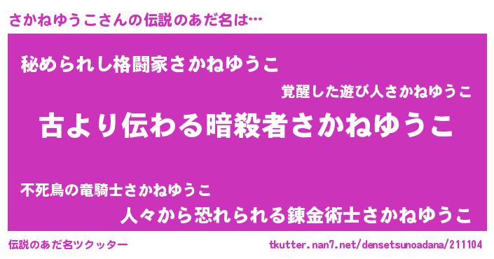 | 意味不明あだ名 | 『永久保存さかねゆうこ』 |