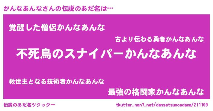 | 男性向けラノベタイトル風あだ名 | 『Re:かんなあんなから始める異世界生活』 |