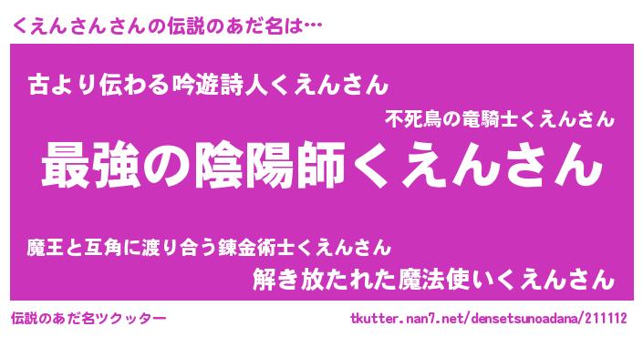 | 意味不明あだ名 | 『住所不定無職くえんさん(74歳)』 |