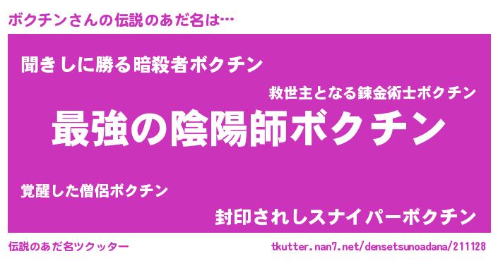| ヒーロー風カッコイイあだ名 | 『仮面ボクダー』『ウルトラボクチンマン』 |