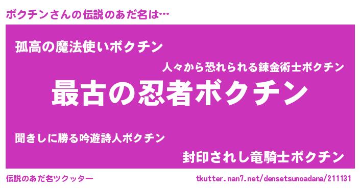 | ファンタジー風あだ名 | 『エターナルボクチンー』『ゼボクトゥ』 |