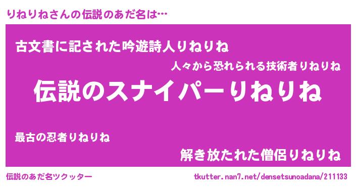 | 意味不明あだ名 | 『ペロリンりねりね』『永久保存りねりね』 |