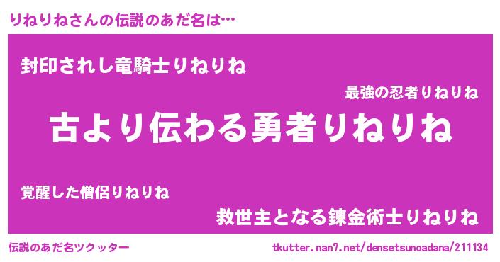 | 意味不明あだ名 | 『永久保存りねりね』『自称りねりね』 |