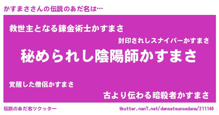| 意味不明あだ名 | 『かすまさフォーエバー』『自称かすまさ』 |