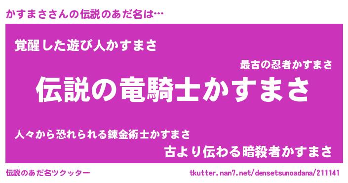 | 男性向けラノベタイトル風あだ名 | 『かすまさの憂鬱』 |