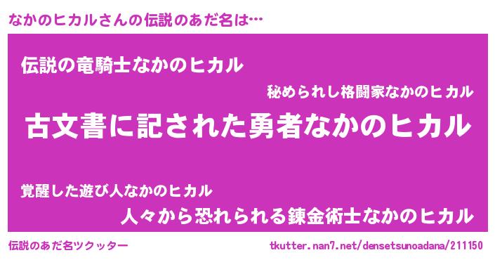 | 男性向けラノベタイトル風あだ名 | 『なかのヒカルに滅ぼされるだけの簡単なお仕事です』 |