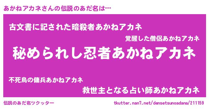 | ポケモン風あだ名 | 『アカネダネ』『ゼニアカ』 |
