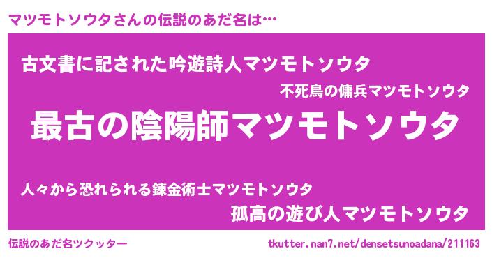| ファンタジー風あだ名 | 『エターナルマツモトソウター』 |