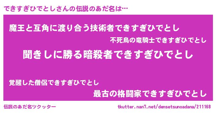 | 男性向けラノベタイトル風あだ名 | 『できすぎひでとしという概念が存在しない退屈な世界 』 |